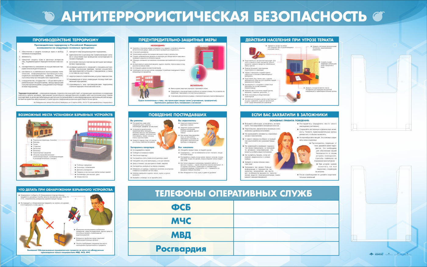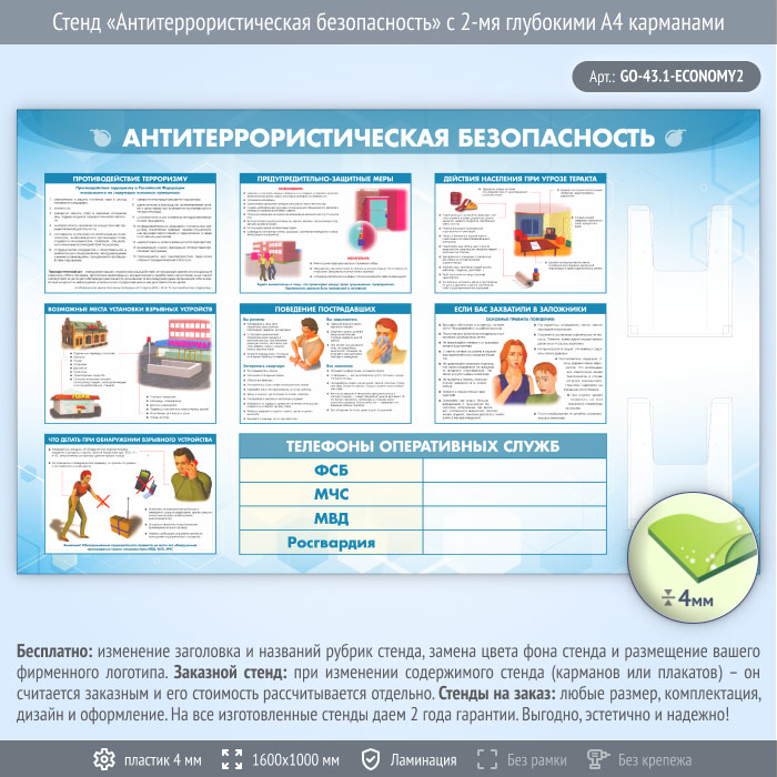 Стенд «Антитеррористическая безопасность» с 2-мя глубокими А4 карманами (GO-43.1-ECONOMY2) в Краснодаре купить