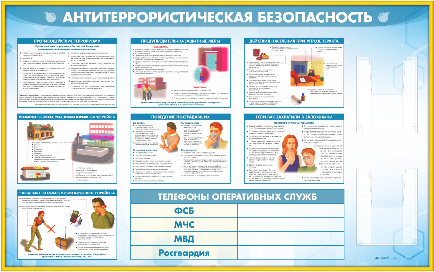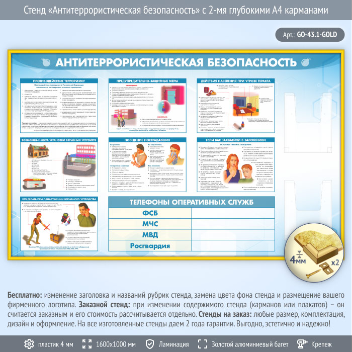Стенд «Антитеррористическая безопасность» с 2-мя глубокими А4 карманами (GO-43.1-GOLD) в Краснодаре купить
