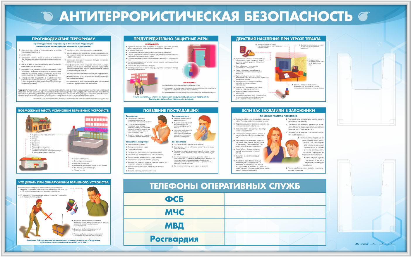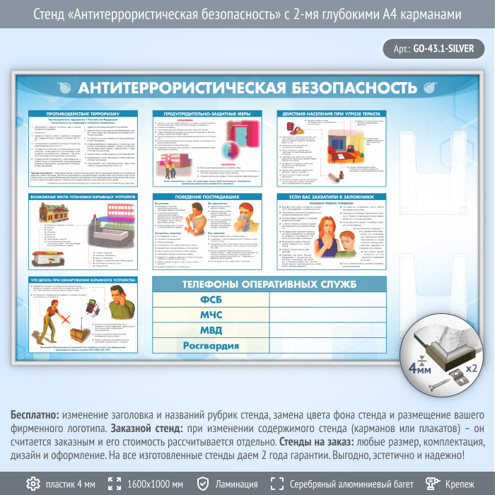 Стенд «Антитеррористическая безопасность» с 2-мя глубокими А4 карманами (GO-43.1-SILVER) в Краснодаре купить