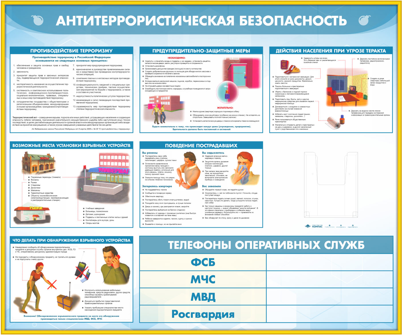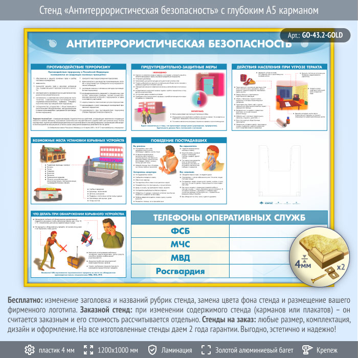 Стенд «Антитеррористическая безопасность» с глубоким А5 карманом (GO-43.2-GOLD) в Краснодаре купить