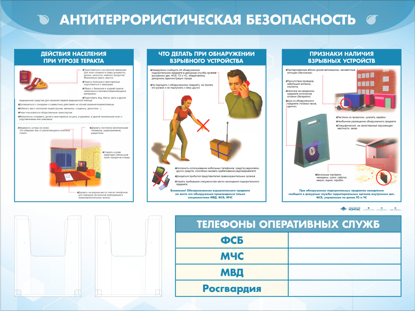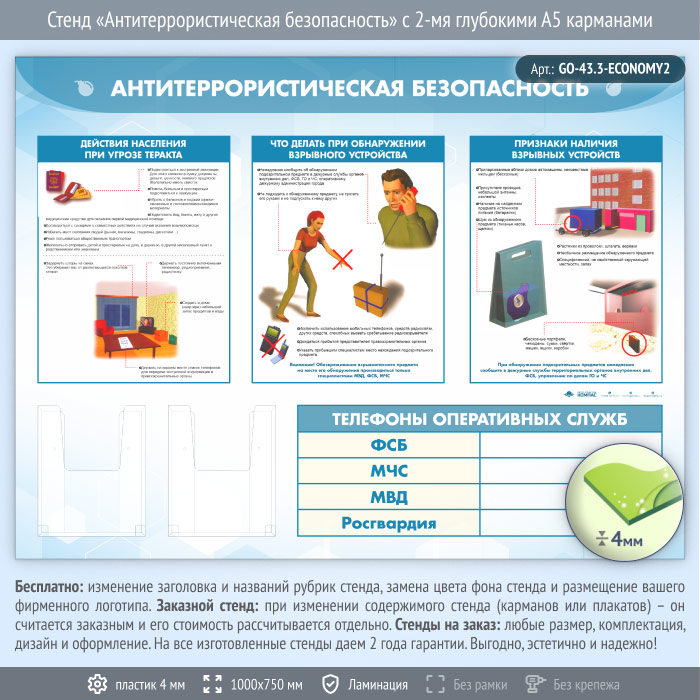 Стенд «Антитеррористическая безопасность» с 2-мя глубокими А5 карманами (GO-43.3-ECONOMY2) в Краснодаре купить