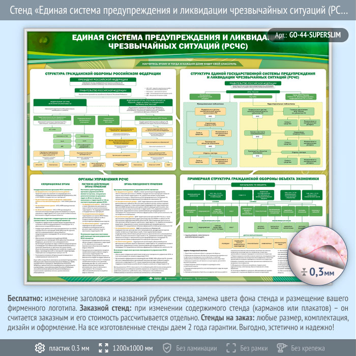 Стенд «Единая система предупреждения и ликвидации чрезвычайных ситуаций (РСЧС)» (GO-44-SUPERSLIM) в Краснодаре купить