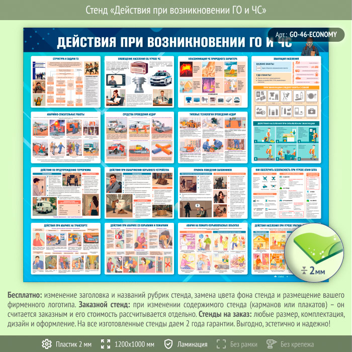 Стенд «Действия при возникновении ГО и ЧС» (GO-46-ECONOMY) в Краснодаре купить