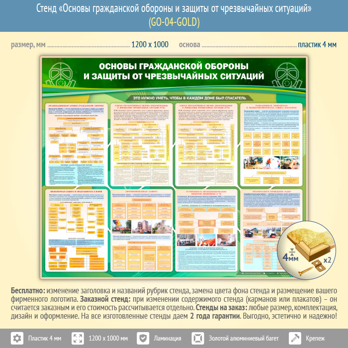 Стенд «Основы гражданской обороны и защиты от чрезвычайных ситуаций» (GO-04-GOLD) в Краснодаре купить