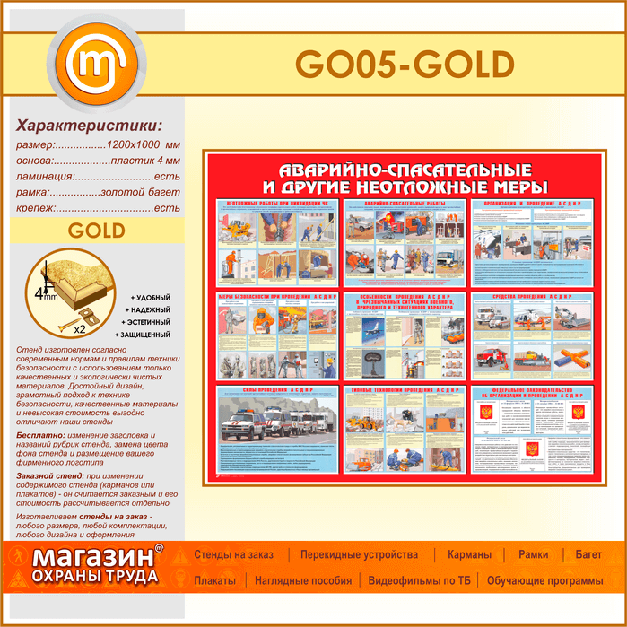 Стенд «Аварийно-спасательные и другие неотложные меры» (GO-05-GOLD) в Краснодаре купить