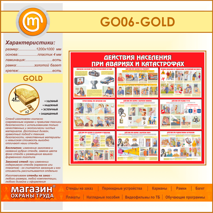 Стенд «Действия населения при авариях и катастрофах» (GO-06-GOLD) в Краснодаре купить