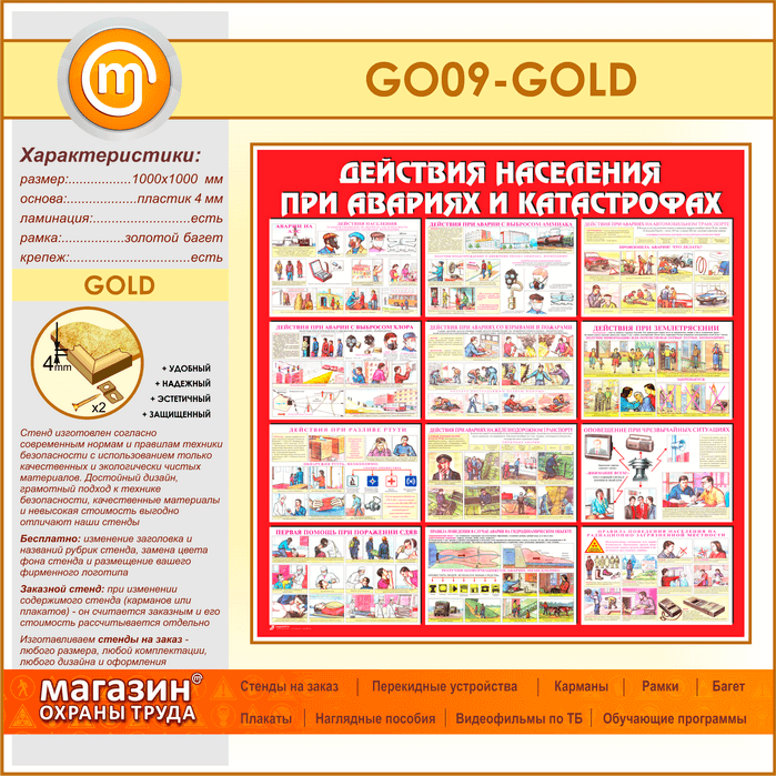 Стенд «Действия населения при авариях и катастрофах» (GO-09-GOLD) в Краснодаре купить