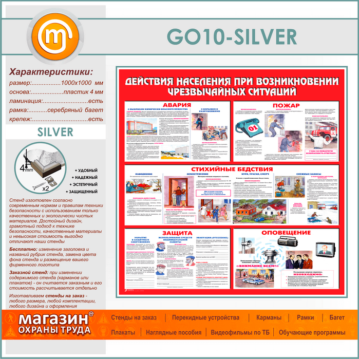 Стенд «Действия населения при возникновении чрезвычайных ситуаций» (GO-10-SILVER) в Краснодаре купить