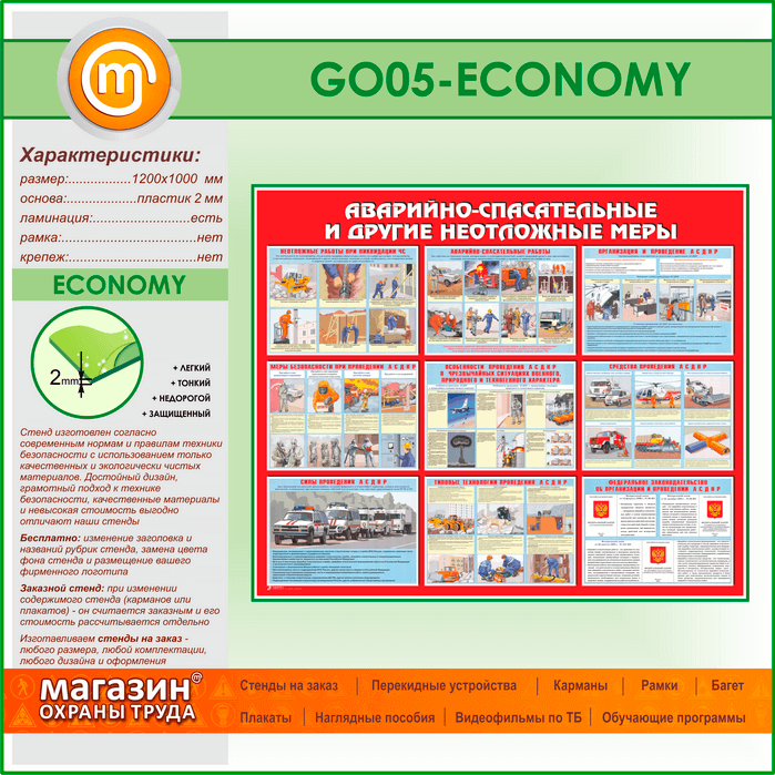 Стенд «Аварийно-спасательные и другие неотложные меры» (GO-05-ECONOMY) в Краснодаре купить