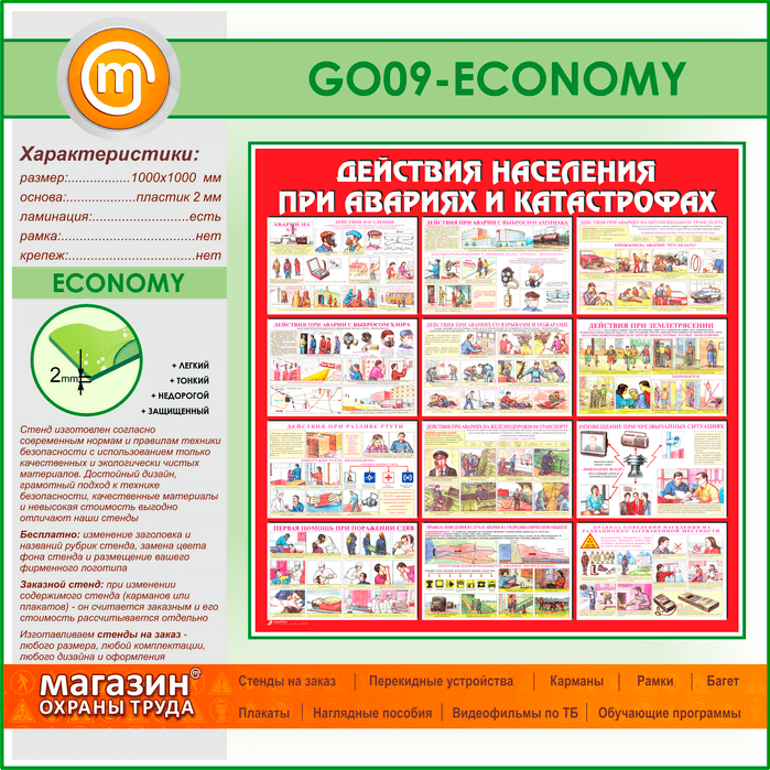 Стенд «Действия населения при авариях и катастрофах» (GO-09-ECONOMY) в Краснодаре купить