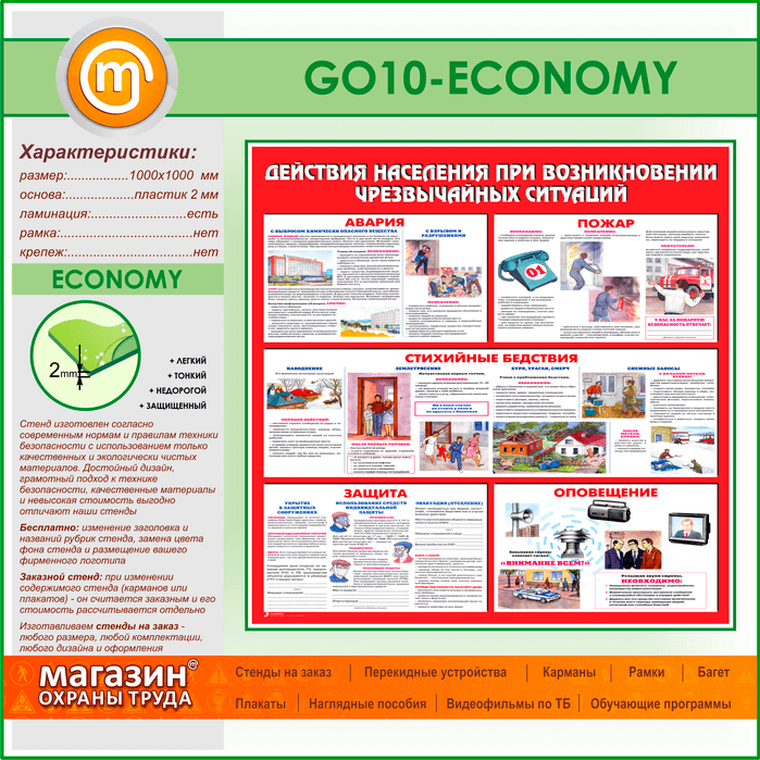 Стенд «Действия населения при возникновении чрезвычайных ситуаций» (GO-10-ECONOMY) в Краснодаре купить