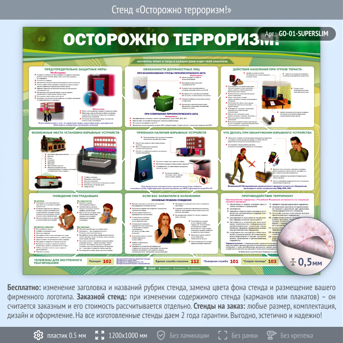 Стенд «Осторожно терроризм!» (GO-01-SUPERSLIM) в Краснодаре купить