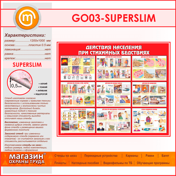 Стенд «Действия населения при стихийных бедствиях» (GO-03-SUPERSLIM) в Краснодаре купить