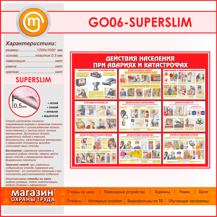 Стенд «Действия населения при авариях и катастрофах» (GO-06-SUPERSLIM) в Краснодаре купить