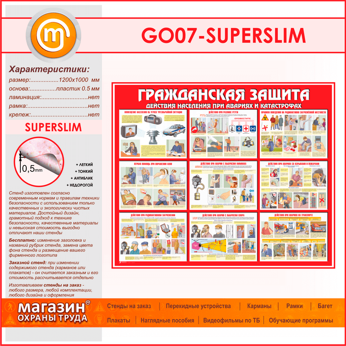 Стенд «Гражданская защита» (GO-07-SUPERSLIM) в Краснодаре купить