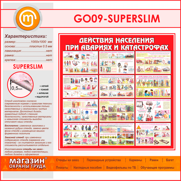 Стенд «Действия населения при авариях и катастрофах» (GO-09-SUPERSLIM) в Краснодаре купить