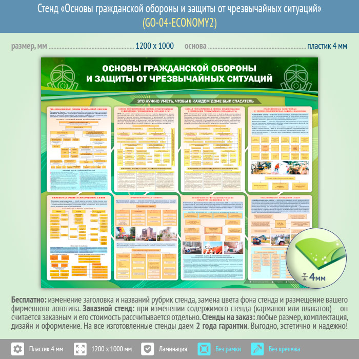 Стенд «Основы гражданской обороны и защиты от чрезвычайных ситуаций» (GO-04-ECONOMY2) в Краснодаре купить
