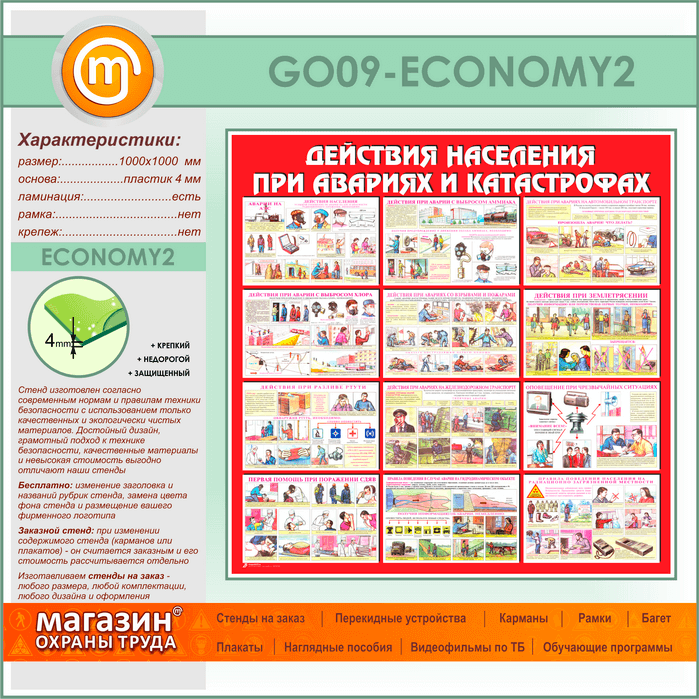 Стенд «Действия населения при авариях и катастрофах» (GO-09-ECONOMY2) в Краснодаре купить