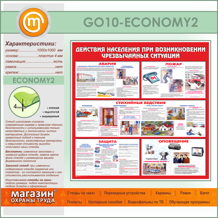 Стенд «Действия населения при возникновении чрезвычайных ситуаций» (GO-10-ECONOMY2) в Краснодаре купить