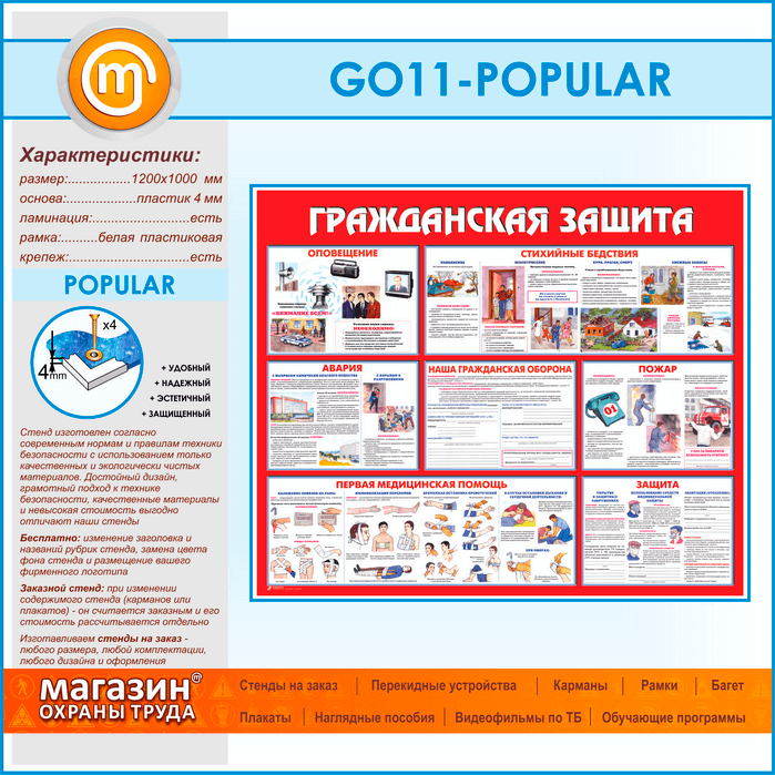 Стенд «Гражданская защита» (GO-11-POPULAR) в Краснодаре купить