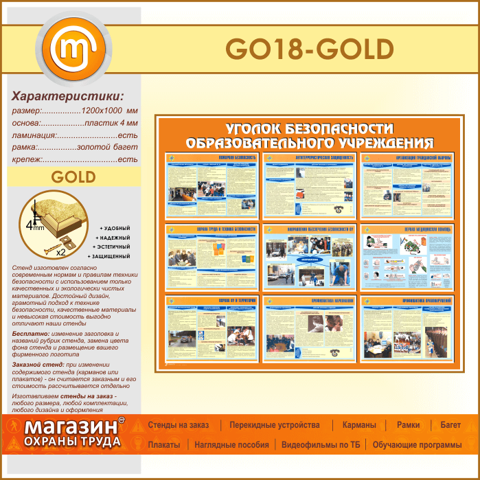 Стенд «Уголок безопасности образовательного учреждения» (GO-18-GOLD) в Краснодаре купить
