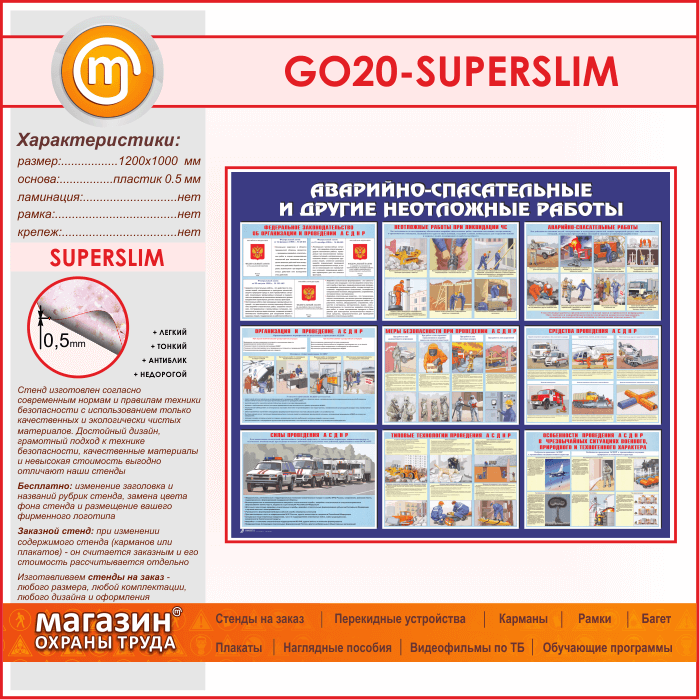 Стенд «Аварийно-спасательные и другие неотложные работы» (GO-20-SUPERSLIM) в Краснодаре купить
