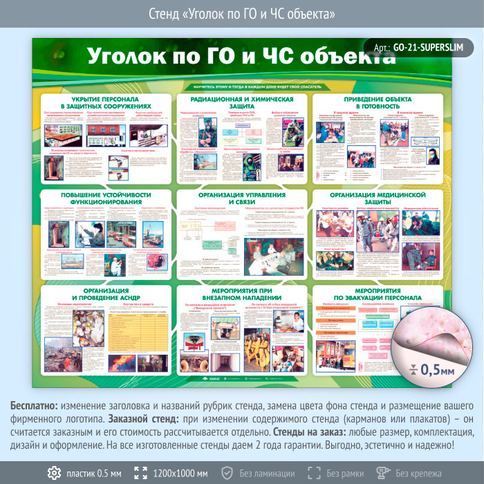 Стенд «Уголок по ГО и ЧС объекта» (GO-21-SUPERSLIM) в Краснодаре купить