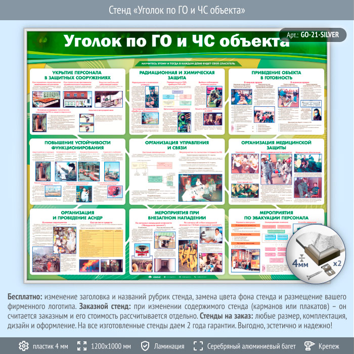 Стенд «Уголок по ГО и ЧС объекта» (GO-21-SILVER) в Краснодаре купить