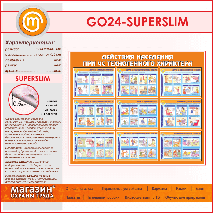 Стенд «Действия населения при ЧС техногенного характера» (GO-24-SUPERSLIM) в Краснодаре купить