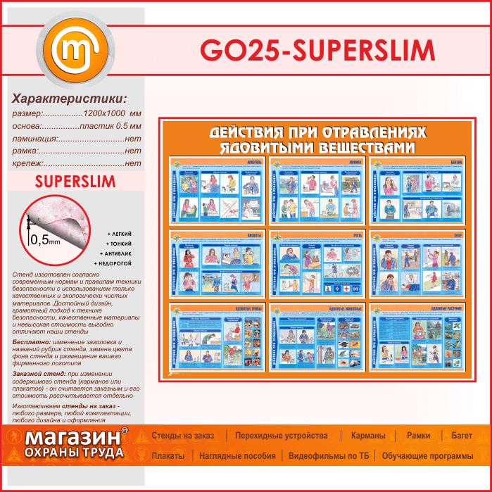 Стенд «Действия при отравлении ядовитыми веществами» (GO-25-SUPERSLIM) в Краснодаре купить