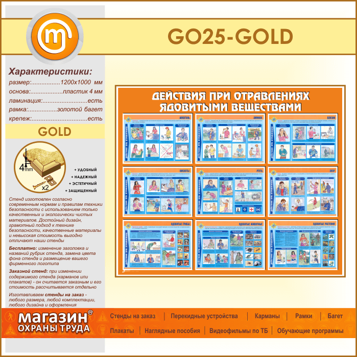 Стенд «Действия при отравлении ядовитыми веществами» (GO-25-GOLD) в Краснодаре купить