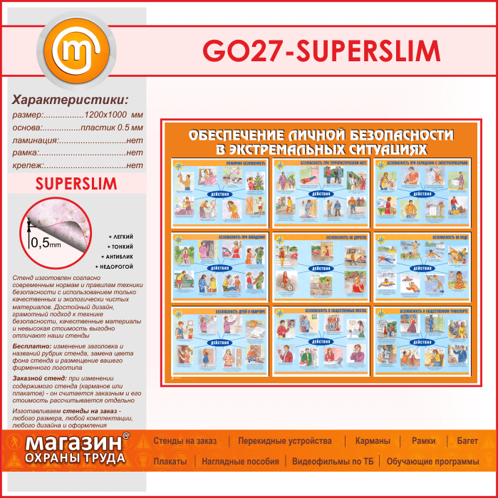 Стенд «Обеспечение личной безопасности в экстремальных ситуациях» (GO-27-SUPERSLIM) в Краснодаре купить