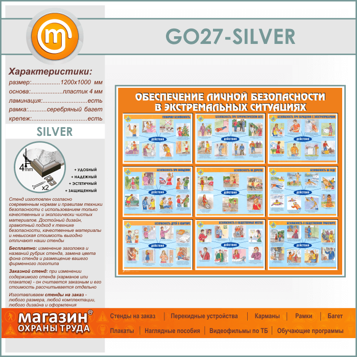 Стенд «Обеспечение личной безопасности в экстремальных ситуациях» (GO-27-SILVER) в Краснодаре купить