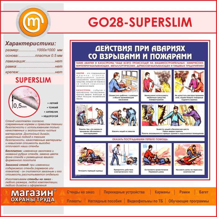 Стенд «Действия при авариях со взрывами и пожарами» (GO-28-SUPERSLIM) в Краснодаре купить