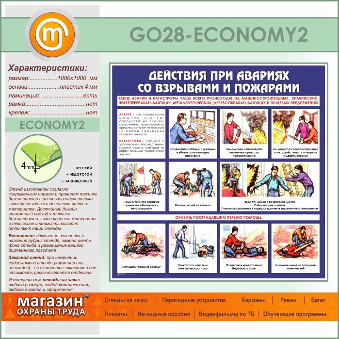 Стенд «Действия при авариях со взрывами и пожарами» (GO-28-ECONOMY2) в Краснодаре купить