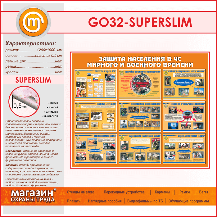Стенд «Защита населения в ЧС мирного и военного времени» (GO-32-SUPERSLIM) в Краснодаре купить