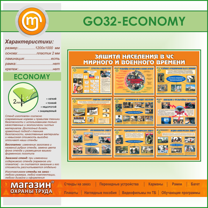 Стенд «Защита населения в ЧС мирного и военного времени» (GO-32-ECONOMY) в Краснодаре купить