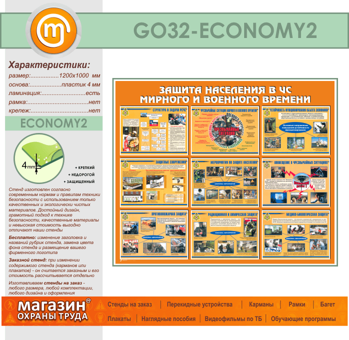 Стенд «Защита населения в ЧС мирного и военного времени» (GO-32-ECONOMY2) в Краснодаре купить