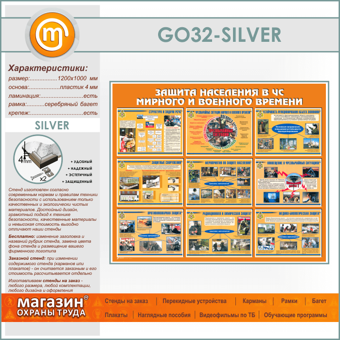 Стенд «Защита населения в ЧС мирного и военного времени» (GO-32-SILVER) в Краснодаре купить