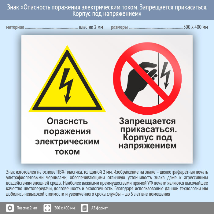 Знак «Опасность поражения электрическим током. Запрещается прикасаться. Корпус под напряжением», КЗ-47 (пластик, 400х300 мм) в Краснодаре купить