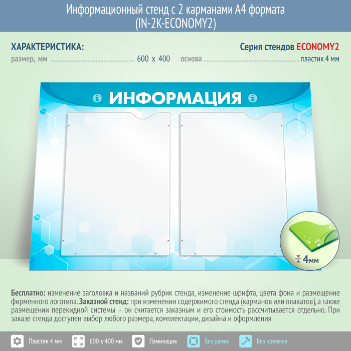 Информационный стенд с 2 карманами А4 формата (IN-2K-ECONOMY2) в Краснодаре купить