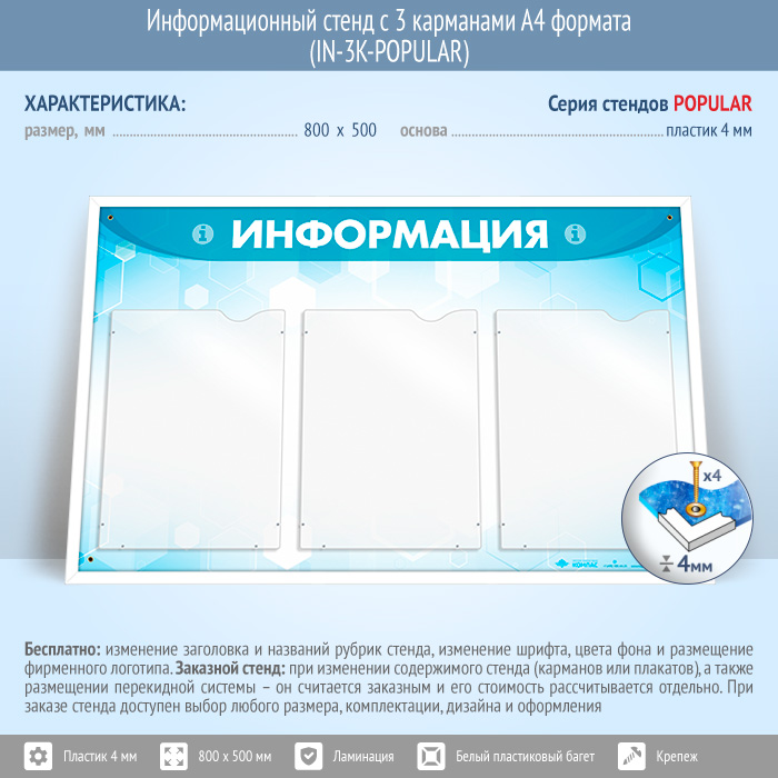 Информационный стенд с 3 карманами А4 формата (IN-3K-POPULAR) в Краснодаре купить
