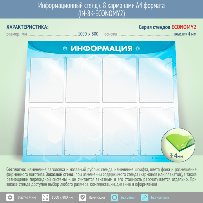 Информационный стенд с 8 карманами А4 формата (IN-8K-ECONOMY2) в Краснодаре купить