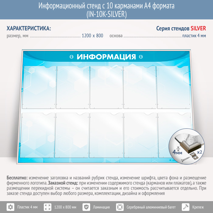 Информационный стенд с 10 карманами А4 формата (IN-10K-SILVER) в Краснодаре купить