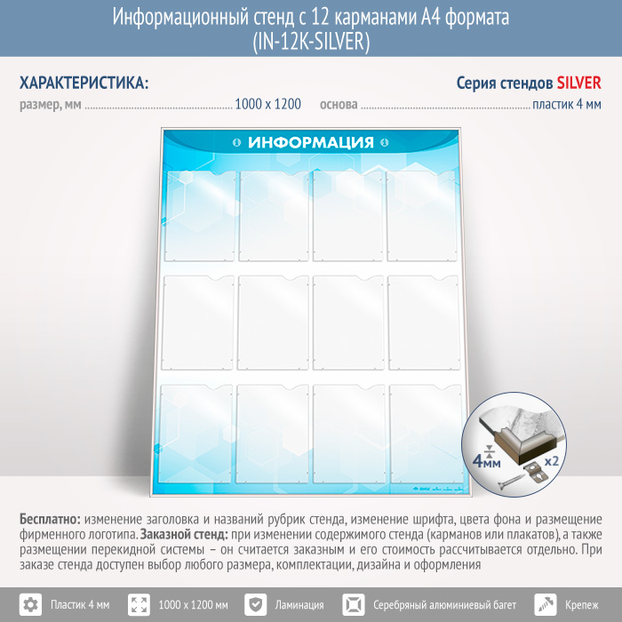Информационный стенд с 12 карманами А4 формата (IN-12K-SILVER) в Краснодаре купить