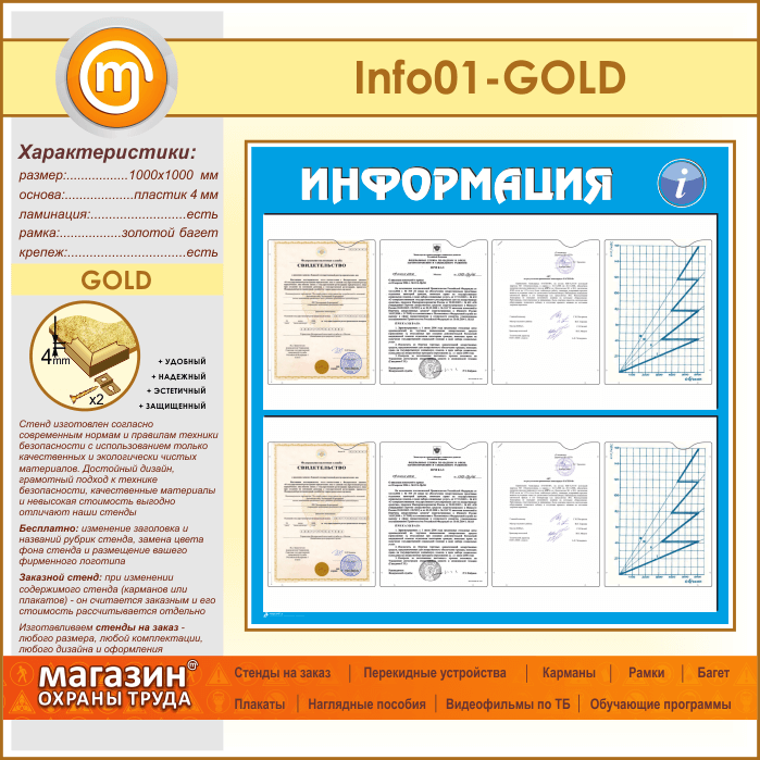Стенд «Информация» с 8 карманами А4 формата (IN-01-GOLD) в Краснодаре купить