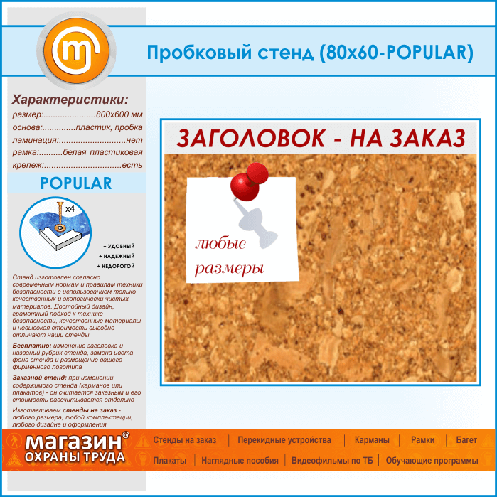 Пробковая доска с заголовком, 80х60 см (IN-06-POPULAR) в Краснодаре купить