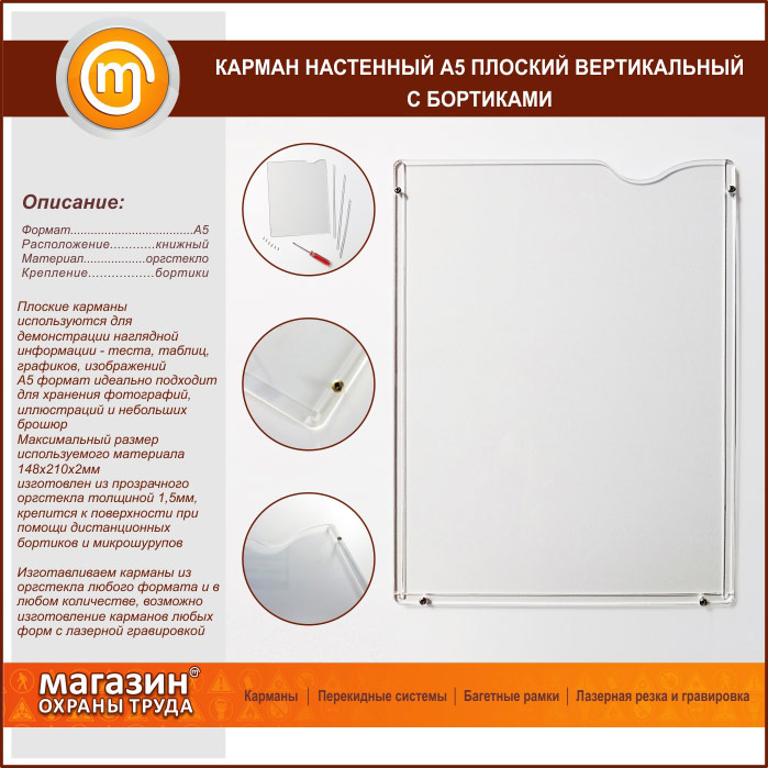 Карман настенный А5 плоский вертикальный с бортиками в Краснодаре купить