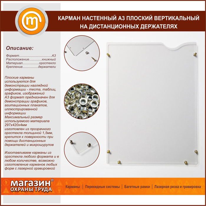 Карман настенный А3 плоский вертикальный на дистанционных держателях в Краснодаре купить
