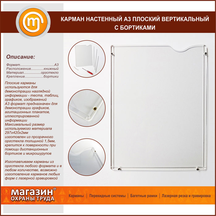 Карман настенный А3 плоский вертикальный с бортиками в Краснодаре купить